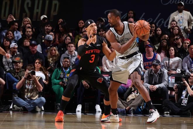 NBA杯赛决赛正式开打,最终尼克斯124-113逆转击败马刺赢得冠军,布伦森荣膺杯赛MVP。